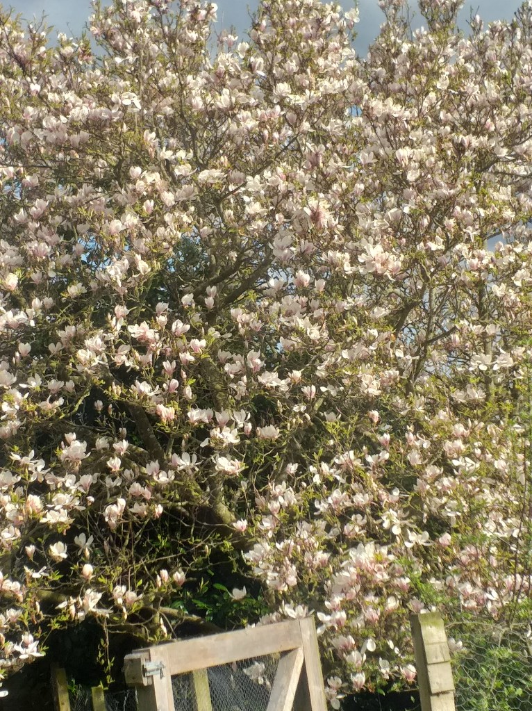 The slow cooker got a thorough wash and is now filled with gently cooking magnolia bark which has the most amazing ginger smell. We are lucky enough to have a large old magnolia tree in the back garden. It tends to only get the lightest of prunes normally but there was a branch overhanging the path to the shed which was so low the Gardener had to basically bend double to get through. So a little pruning was needed to make the shed more accessible and as a bonus, I got some magnolia bark to dye with.